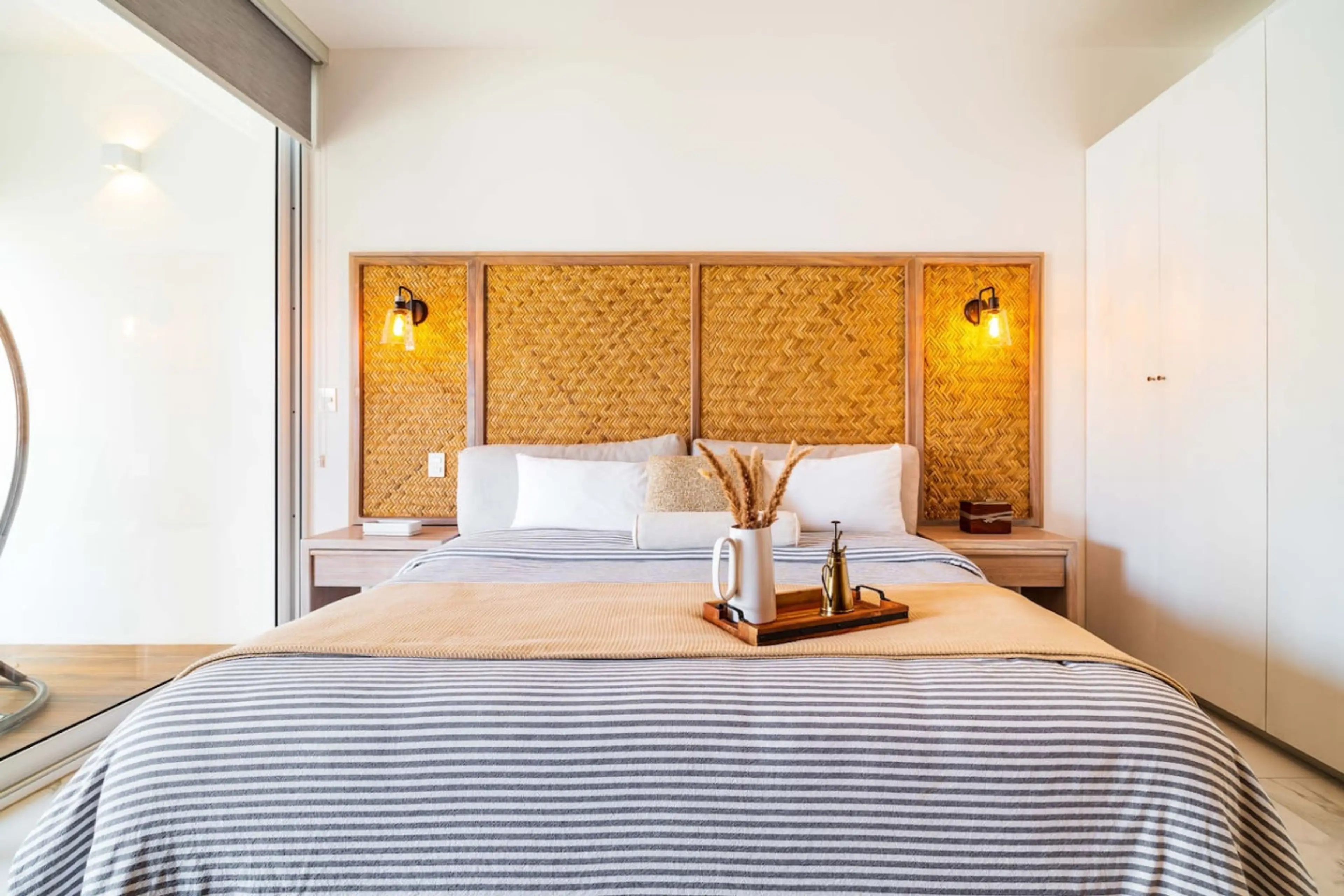Safest location in Cabo, 24/7 onsite security. Unwind in luxury at our quiet and peaceful Marea condo. This exquisite 2BR, 2BA oasis boasts stunning ocean views, a private balcony with swing, and upscale amenities. Gourmet kitchen, plush king & queen beds, and spacious living area with 75" smart TV....